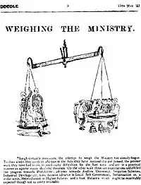 In the 1926 elections, Swaraj emerged as the largest party, but refused to form the government because of its opposition to dyarchy. Justice declined power because it did not have enough seats and due to clashes with governor Viscount Goschen over issues of power and patronage. Goschen turned to the nationalist independent members. Unaffiliated, P. Subbarayan was appointed Chief Minister. Goschen nominated 34 members to the council to support the new ministry. Initially Justice joined Swaraj in opposing "government by proxy". In 1927, they moved a no confidence motion against Subbarayan that was defeated with the help of the Governor–nominated members. Halfway through the ministry's term, Goschen convinced Justice to support the ministry. This change came during the Simon Commission's visit to assess the political reforms.[23] After the death of Ramarayaningar in December 1928, Justice broke into two factions: the Constitutionalists and the Ministerialists. The Ministerialists were led by N. G. Ranga and favoured allowing Brahmins to join the party.[41] A compromise was reached at the eleventh annual confederation of the party and B. Munuswamy Naidu was elected as the president.[18]