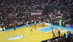Justin Brownlee attempting the game winning three point shot in Game 6 of the 2016 PBA Governors' Cup Finals.