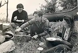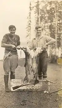 At the time of the purchase it was 5 cabins plus small lodge building with a store carrying supplies for the Indians and fishing tackle for the guests, plus a dining room to serve meals.[7] She developed friendships with numerous Chippewa Indian families who lived north of the lodge on the Canadian border. After 5 years of associating with them they trusted her. They helped each other, attended each other's celebrations and transacted business.[9] They taught her wilderness skills.[6][10]