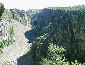 Jutulhogget is a 2.4-kilometre (1.5 mi) long dry canyon in the municipalities of Alvdal and Rendalen in Innlandet county, Norway. The canyon was created by the rupture of the dam of a proglacial lake and the force of the rushing water leaving the lake carved out the canyon. The canyon was protected as a nature reserve in 1959. The steep walls of the canyon range from 100 to 240 metres (330 to 790 ft) in height.[1]