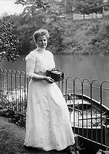 Buchler née von Rhamm was born on 11 October 1876 in Braunschweig, Germany.[2] A self-taught photographer, her husband gave Buchler her first camera (a binocular Voigtländer)[1] in 1901.[3] During World War I Buchler recorded daily life in Braunschweig including war efforts, orphaned children, and wounded soldiers.[4] Buchler worked mainly with black and white film but also experimented with the new Autochrome process.[5]