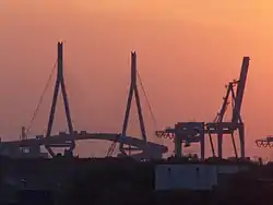 The Köhlbrand Bridge (German: Köhlbrandbrücke) is a cable-stayed bridge in Hamburg, Germany,[2] which connects the harbor area on the island of Wilhelmsburg between the Norderelbe and Süderelbe branches of the Elbe river with motorway 7 (exit Waltershof). It bridges the Süderelbe, here called Köhlbrand, before it unites with the Norderelbe again. The bridge was opened on 9 September 1974.