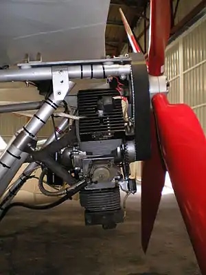 The SC 430 is a unique three cylinder radial engine that is very compact and lightweight at only 17 kg (37 lb). The engine features single capacitor discharge ignition, a single Bing 49 diaphragm type carburetor and rotary valve induction. When last built by Compact Radial Engines it was currently offered without a reduction drive, although when Zanzottera built it a 1.75:1 cog belt reduction drive was available. Starting is electric starter only and a recoil starter is not an option.[1][2][4]