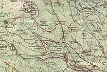 The Königsberg is a neighbouring peak of the Brocken and, at 1033.5 m above sea level[1] the third highest elevation in the Harz mountains. It lies on a long ridge that runs from southeast to northwest about 1.5 km south of the Brocken's summit. Near its summit on the northwest side is the rock formation of Hirschhörner (max. 1,023.2 m).[1] To the east the land descends to the Schwarze Schluftwasser, a small tributary of the Kalte Bode which flows south of the mountain. To the east on the far side of the Schwarzer Schluftwasser is the Heinrichshöhe (1,039.5 m), another subpeak of the Brocken.