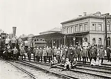 Its operating company, the Kleinbahn AG Höchst-Königstein gained a concession to build the Königstein Railway in 1901 as a Kleinbahn (light railway); this company later developed into the Frankfurt-Königsteiner Eisenbahn (FKE). Construction began at the Höchst am Main station (before its incorporation into Frankfurt) on the Taunus Railway. The line was opened on 24 February 1902.[2] The company first had bought three locomotives which were similar to the Prussian T 9.1. Followed by three more of the same type in 1903 (sold in 1910), 1913 and 1924 as well as a Prussian T 3 in 1906, there were no further machines up to 1947 when two Palatine P 5 from Deutsche Reichsbahn were bought. Apart from few other steam locomotives, which were partly short time lend, the FKE switched powers to diesel engines, buying several Esslingen railbuses in 1959 and renting Class V 100 and Class V 160 from Deutsche Bundesbahn operating as push-pull trains with "Silberling"-coaches.[3] Since 1987 the FKE runs railcars VT 2E by Linke-Hofmann-Busch. Since 2006 the fleet consists of LINT 41 railcars, too.[4]