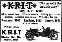 K-R-I-T (or simply "Krit") was a small automobile manufacturing company (1909–1916) based in Detroit, Michigan.