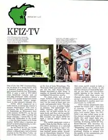 KFIZ-TV, UHF analog channel 34, was an independent television station licensed to Fond du Lac, Wisconsin, United States that operated from August 1, 1968, to November 30, 1972. The station was a sister station to KFIZ-AM, and covered an 11-county area in east-central Wisconsin.[1] Both stations were owned by RK Communications, parent company of Fond du Lac's daily newspaper, the Fond du Lac Reporter. Although this was contrary to regulations, the owners were "grandfathered" due to their cross-media ownership pre-dating the regulations.[2]