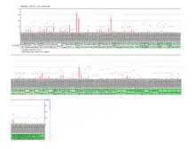 Using GenoMatix ElDorado analysis tools, the promoter was predicted to be 727 base pairs in length projecting into exon 1. There are two predicted transcriptional start sites for this promoter, shown on the adjacent image.[13]