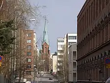 Kaakinmaa is a district in Tampere, Finland, located in the city center. It includes the area south of Pyynikki Church Park (Pyynikin kirkkopuisto) between the Hämeenpuisto park and the Mariankatu street.[1] To the south, the area extends to Eteläpuisto on the shores of Lake Pyhäjärvi. The neighboring parts of the city are Nalkala in the east, Amuri in the north and Pyynikki and Pyynikinrinne in the west.[2] Sometimes Kaakinmaa is incorrectly considered to belong to Pyynikki and Pyynikinrinne; however, Kaakinmaa has its own district.