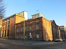 In Kaakinmaa, the Tampere Workers' Hall and the Tampere Workers' Theatre are located, as well as the old Pyynikki Brewery and the Klingendahl factory property.[6][7] Next door to Klingendahl is the former Tampere Epidemic Hospital, built in 1910, which was used as a student dormitory until the summer of 2009 after the hospital closed.[8] Almost all of the residential buildings in the area are apartment buildings, built mainly in the 1960s and 1970s to replace the earlier wooden houses built in the late 19th century. The primary schools operating in Kaakinmaa are the Alexander School of the 1st–6th grades and the Pyynikki School of the 7th–9th grades (former Tampere High School for Girls).[9][10] At the corner of Satamakatu and Koulukatu is the Swedish-language school (Svenska samskolan i Tammerfors),[11] which includes grades 1-9 of the comprehensive school and the upper secondary school.