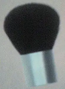 A kabuki brush (sometimes called mushroom brush) is a makeup brush with dense to fluffy bristles and most recognizably has a short handle. The brush head is most often rounded, though it can also be flat. Traditionally, the bristles are made of natural materials like animal hair (e.g., goat or horse hair), but most brushes available now on the market have synthetic bristles.