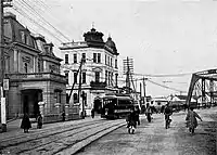 The name of Kabutochō, literally the town of Kabuto (ancient helmet), is said to come from a legend that Minamoto no Yoshiie, upon his return from having conquered the north-eastern provinces in the eleventh century, buried his helmet there.[2] It used to be a swampy area till the early 17th century, when the Daimyo who were forced to participate in the building of the Edo Castle built their residences.[3]
