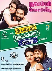 Kadavul Irukaan Kumaru (transl. God exists, Kumar) is a 2016 Indian Tamil-language romantic comedy film written and directed by M. Rajesh and produced by N. Ramasamy. The film stars G. V. Prakash Kumar, Nikki Galrani and Anandhi, while Prakash Raj and RJ Balaji play supporting roles. The film began during March 2016. The movie released on 18 November 2016 and received negative reviews from critics.[1][2] The film was dubbed and released in Telugu as Chennai Chinnodu in 2018.[3]