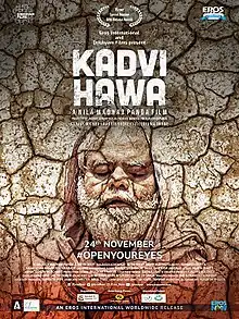Kadvi Hawa (transl. Bitter wind) is a 2017 Indian Hindi-language drama film, directed by Nila Madhab Panda and produced by Panda, Drishyam Films and Akshay Parija. Based on the theme of climate change, the film stars Sanjay Mishra, Ranvir Shorey and Tillotama Shome in lead roles. It was released on 24 November 2017.[2] It also got a Special Mention at the 64th National Film Awards held on 7 April 2017. The film is presented by Drishyam Films.[3]