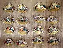 The shells in the inside would have elaborate paintings, often depicting scenes from the Tale of Genji.[1] The aim of the game was to find the other half that would fit.