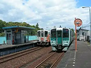 - ↑ Kawashima, Ryōzō (2013). 図説: 日本の鉄道 四国・九州ライン 全線・全駅・全配線・第1巻 四国東部エリア [Japan Railways Illustrated. Shikoku and Kyushu. All lines, all stations, all track layouts. Volume 1 Eastern Shikoku] (in Japanese). Kodansha. pp. 43, 74. ISBN 9784062951609.