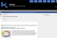 Kairos: A Journal of Rhetoric, Technology, and Pedagogy is a biannual peer-reviewed academic journal covering the fields of computers and writing, composition studies, and digital rhetoric. It was established in 1996,[1] and was the first academic journal to publish multimedia webtexts.[2]