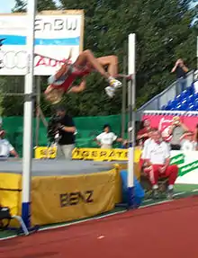 Kajsa Margareta Bergqvist (Swedish pronunciation: [ˈkǎjːsa ˈbæ̂rjkvɪst]; born 12 October 1976 in Sollentuna, Stockholm) is a Swedish former high jumper. She won one bronze medal in the Olympic Games, one gold and two bronze medals in the World Championships in Athletics and one gold and one bronze in the European Championships. Her personal outdoor record of 2.06 m, set in Germany in 2003, is also a Swedish record. Her indoor record of 2.08 m, set at the Hochsprung mit Musik meeting in 2006, is the world indoor record.[2]