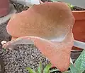 It may be grown as a houseplant or outdoors in mostly frost-free landscapes and is not toxic to dogs if it has not been treated with any chemicals (according to the National Animal Poison Information network).[13] This plant needs full to partial sun, with intermediate to warm temperatures above 5 °C (41 °F).[14] It will survive frost on a scale from light to moderate.[15] For growth in a greenhouse K. beharensis will grow in a mixture of equally distributed loam and sand, and gravel for drainage. The plant should be dry before watering again, as too much water will kill it. Watering should occur every 14–20 days during the growing season. In the winter months it should be watered sparingly. The species is resilient and will survive if neglected.[16]
