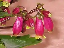 Many cultivars have been derived from K. porphyrocalyx. 'Wendy' is a multiflorous cultivar with 15-30 flowers in an inflorescence, which may derive solely from K. porphyrocalyx[2] or originate from hybridization between K. miniata and K. porphyrocalyx.[3]