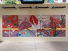 Public art is present at the station via the Station Art Program. Two glass mosaics titled Pukana Lā Ma Oʻahu (Oʻahu Sunrise) and Napoʻo ʻAna O Lā Ma Oʻahu (Oʻahu Sunset) by artist Robert Kushner are viewable at both entrances and depict the Waimalu aquifer providing sustenance to crops such as taro, rice, and watercress.