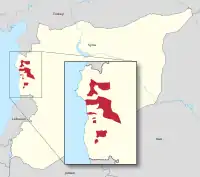 The Kalbiyya were estimated in 2011 to number approximately 480,000 out of a population of 3 million Alawites in Syria.[1] At that time the total Syrian population was around 22 million.[10] The main areas of Kalbiyya settlement are the districts of Jableh, Haffa and Latakia and the town of Qardaha,[1] all within Latakia Governorate in north west Syria.[11] They are the most geographically compact of the Alawite tribes, the others being more dispersed in non-contiguous areas across the coastal region.[12]