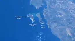 Kalem Island (Turkish: Kalem Adası, literally "Pen Island") is an Aegean island of Turkey. Administratively, the island is a part of Dikili ilçe (district) of İzmir Province at 9°0′12″N 26°47′42″E / 9.00333°N 26.79500°E / 9.00333; 26.79500.[1] It is close to Bademli town and its distance to main land (Anatolia) is about 400 metres (1,300 ft). It is a narrow island where the maximum length in the north to south direction is about 1.5 kilometres (0.93 mi)