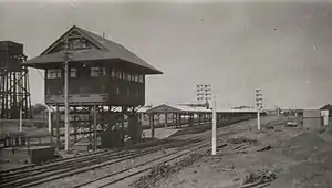 In 1917, Kalgoorlie became a break-of-gauge station when the Commonwealth Railways' standard gauge Trans-Australian Railway from Port Augusta opened. This ceased on 3 August 1968, when the Eastern Goldfields Railway was gauge converted.[8][9]