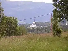 A picture of Kalls Kyrka from the neighbouring village of Sölvsved