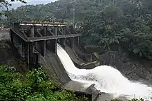 Kallarkutty Dam is a gravity dam built on the Muthirapuzha river, a tributary of the Periyar river, as part of the Neriamangalam Hydroelectric Project[1] at Kallarkutty in Vellathooval panchayat of Idukki district in Kerala, India. The water discharged from the Chenkulam dam's powerhouse and the Muthirapuzha river is diverted to the Neriamangalam powerhouse near Panamkutty above the Pambla dam. The Hydroelectric Project was commissioned on 27 January 1961 to generate 45 MW of power using 3 turbines with a capacity of 15 MW. In 2006, the project was upgraded from 45 MW to 52.65 MW.[2] Taluks through which release flow are Udumbanchola, Devikulam, Idukki, Kothamangalam, Muvattupuzha, Kunnathunadu, Aluva, Kodungalloor and Paravur.