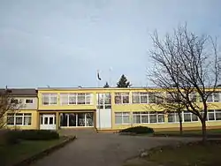 The secondary school is housed in a two-story building with six forms, two optional higher forms, administrative offices, a canteen, a library, two gyms and an Aleksandras Stulginskis museum. There are over 500 students and over 50 teachers.