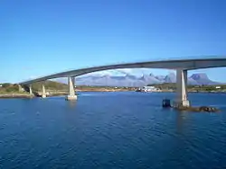 The Kalvøyrevet Bridge (Norwegian: Kalvøyrevet bru) is a cantilever bridge in the municipality of Herøy in Nordland county, Norway. The concrete bridge is 298 metres (978 ft) long, and the main span is 95 metres (312 ft). The bridge connects the small islands of Kalvøya and Hestøya and it was built as a part of Norwegian County Road 166 which connects the larger islands of Indre Øksningan and Ytre Øksningan with the rest of Herøy Municipality.[1]
