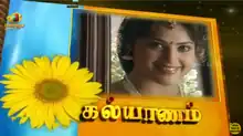 Kalyanam (transl. Wedding) is a 2009 Indian Tamil-language soap opera that was aired on Sun TV. The show premiered on 2 March 2009 to 7 August 2009 at 7:30PM IST for 110 episodes. The show stars Meena, Yuvarani, Saakshi Siva, Delhi Kumar and Shanthi Williams.