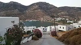 Kamares (Greek: Καμάρες) is a village and the main port for the island of Sifnos, Greece. Kamares is situated in the western side of the island on a natural harbor. The village has a large beach with many restaurants and hotels. The buildings in Kamares form a U-shape around the bay, with most restaurants and shops being directly on the water, and typically the hotels and houses on the hill above them. Visitors to the island arrive via the ferry terminal in the harbor; nearby bus service connects Kamares to the other villages of Sifnos.