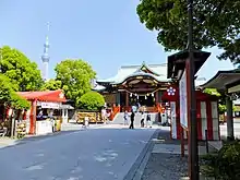 ![]() Kameido Tenjin Shrine in Tokyo, with the Tokyo Skytree in the background | |