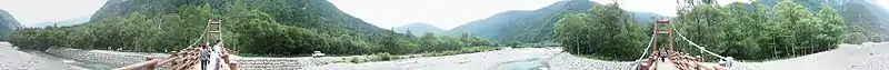 Japanese novelist Ryunosuke Akutagawa also contributed to a boom in domestic tourism when he published his book Kappa in 1927. The naming of the Kappa-Bashi, the narrow pedestrian suspension bridge over the Azusa River mentioned in the novel predates the book's publication. The origin of the naming of the bridge is uncertain, but is more commonly thought to refer to Kappa, mythical water deities said to inhabit Japan's mountain streams and rivers.