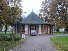 Originally the Red or Little Pavilion (Roter or Kleiner Pavillon) was used as a bar and music stage. Today it acts as a modern art gallery sponsored by the Red Pavilion Art Society (Kunstverein Roter Pavillon). The exhibitions mainly contain works by regional artists.