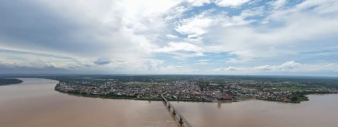 The city is connected to the district of Tbong khmum by the Kizuna bridge, the first in Cambodia to span the Mekong.