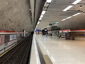 Kamppi metro station (Finnish: Kampin metroasema; Swedish: Kampens metrostation) is a station on the Helsinki Metro. In addition to serving the area around Kamppi in central Helsinki, the station is integrated with the Kamppi Center bus terminal and shopping complex. Kamppi is served by both lines M1 and M2.