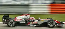 Kobayashi made his Formula One debut at the 2009 Brazilian Grand Prix, following a complication to Glock's injury that was initially not detected.[5] He qualified 11th in a chaotic session that lasted for over two and half hours and was red-flagged twice due to accidents caused by torrential rain. Early in the race, while running in sixth place, he held off for several laps a challenge by Jenson Button, who needed to finish well to clinch the world championship. He finished the race in tenth place, and was later promoted to ninth when Heikki Kovalainen was penalised. Button jokingly described Kobayashi as "absolutely crazy, very aggressive".[6] He also competed in the 2009 Abu Dhabi Grand Prix, as Glock's injury had not healed sufficiently.[7] Kobayashi qualified 12th and finished sixth, scoring his first World Championship points, in the inaugural day-night race in Abu Dhabi.[8] Before Toyota decided to withdraw from Formula One, Kobayashi was expected to be given a full-time seat at Toyota for the 2010 Formula One Season.[9]