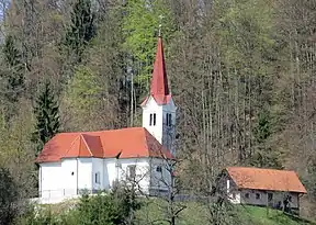 The local church is dedicated to Saint Leonard and belongs to the Parish of Vače. It is a Gothic building that was restyled in the Baroque in the 18th century.[5] The old clock from the church, dating from 1853, was removed and is now displayed on the side of a hayrack in Slivna.
