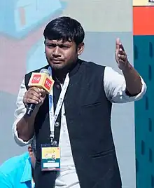 Kanhaiya Kumar is an Indian political activist who served as the president of the Jawaharlal Nehru University Students' Union and leader of the All India Students Federation (AISF). He served as National Executive Council member of Communist Party of India.[2] He joined Indian National Congress on 28 September 2021.[3]