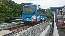 A view of the elevated track with the station to the left (before the construction of roads exclusively for dual-mode vehicles).