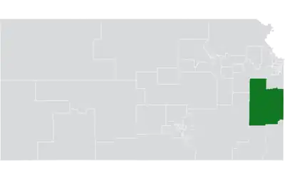 The district is located entirely within Kansas's 2nd congressional district, and overlaps with the 2nd, 4th, 5th, 6th, 9th, and 59th districts of the Kansas House of Representatives.[4] It borders the state of Missouri.[1]