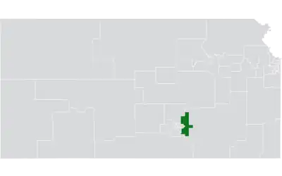 The district is located entirely within Kansas's 4th congressional district, and overlaps with the 72nd, 75th, 77th, 81st, 82nd, 85th, 88th, 90th, and 99th districts of the Kansas House of Representatives.[4]
