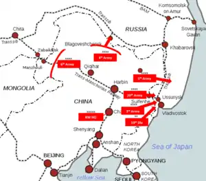 Arshaan Direction Hailar Direction Amur Direction Front Reserve Sanjiang Direction Lake Khanka (north) Lake Khanka (west) Suifenhe Direction Dongning Direction Hunchun Direction