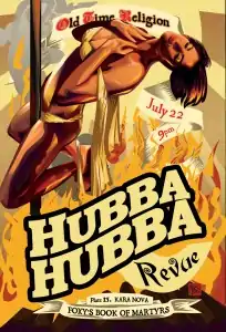 In July 2011, Kara Nova featured in the Hubba Hubba Revue's poster as pole acrobat/saint being burnt at the stake, with the burlesque captions "Old Time Religion" and "Plate 15. Kara Nova. Foxy's Book of Martyrs" - a play on Foxe's Book of Martyrs.[2]