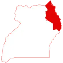 The Karamoja sub-region, commonly known as Karamoja, is a region in Uganda. It covers an area of 27,528km and comprises the Kotido District, Kaabong District, Karenga District, Nabilatuk District Abim District, Moroto District, Napak District, Amudat District and Nakapiripirit District. The region is projected to have a population of 1.4 millions in 2022 by UBOS.[1]