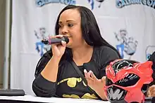 Karan Ashley was born in Odessa, Texas. She is of mixed African-American and Mexican descent.[2] Started her education at Lida Hooe Elementary in Dallas Texas and went on to graduate from David W. Carter High School in Dallas. She had been accepted to North Texas State University, but just before the first day of her freshman year, she landed the role of Aisha Campbell, the second Yellow Ranger in the Fox Kids series Mighty Morphin Power Rangers, replacing the late Thuy Trang (Trini Kwan).[1] Her last Power Rangers appearance was in the finale of the third season of the series. In 2023, Ashley reprised the role of Aisha Campbell in the Netflix special, Mighty Morphin Power Rangers: Once & Always, which celebrates the 30th anniversary of the Power Rangers franchise and also marks her character's first appearance since her departure from the series in 1996, with the character Minh taking over the saber tooth tiger power.[3]