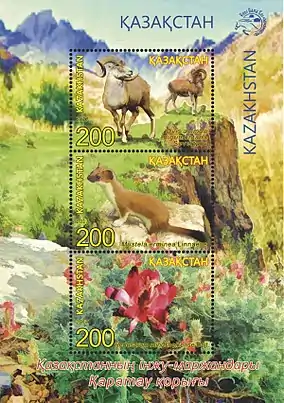 ![]() 2017 stamp sheet of Kazakhstan dedicated to the Karatau Nature Reserve | |